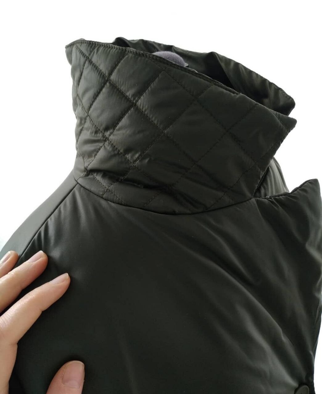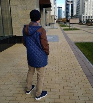 - сшить самостоятельно пуховик А-силуэта на молнии, которая закрывается планкой на кнопки и со съемным капюшоном с козырьком
